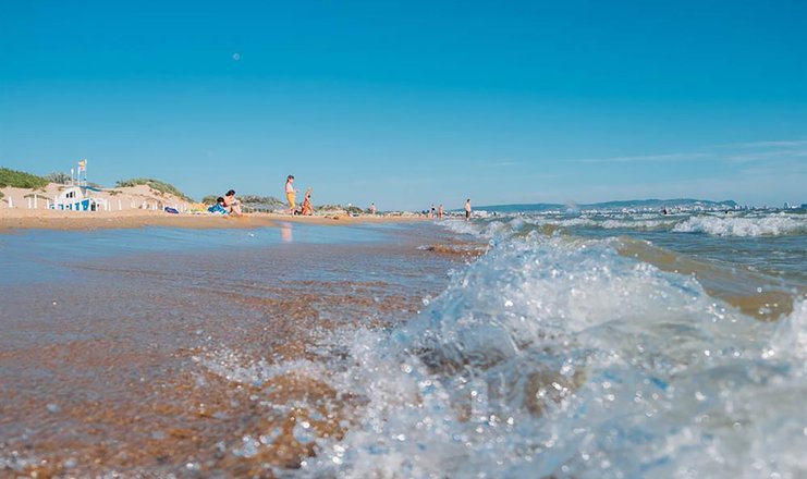 Песчаный пляж находится в 250 метрах от отеля. Пляж оборудован всем для комфортного отдыха – есть раздевалки, шезлонги, навесы, открыты бары и кафе, доступны водные развлечения.