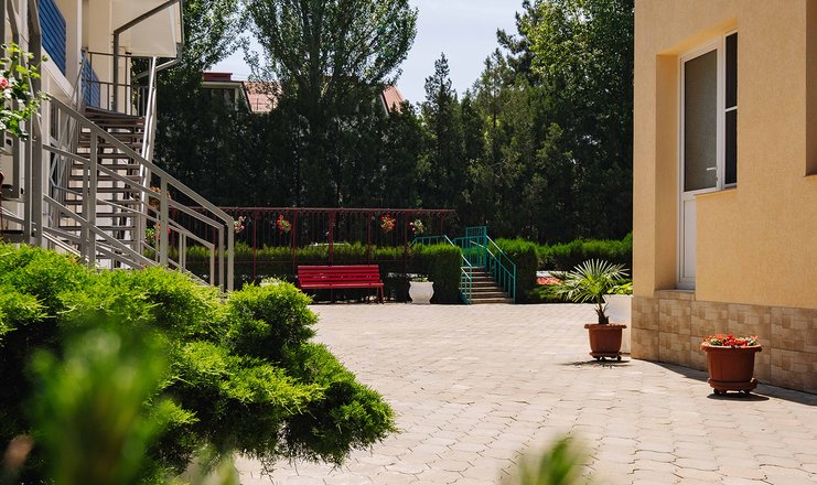 Гостевой дом расположен на ухоженной территории площадью 1300 кв.м. и состоит из двух корпусов - 2 и 4 этажа. Гости могут выбрать из стандартных однокомнатных и двухкомнатных номеров, оборудованных санузлом, сплит-системой и балконом. Номера оборудованы бытовой техникой - холодильник, телевизор, фен, электрочайник.