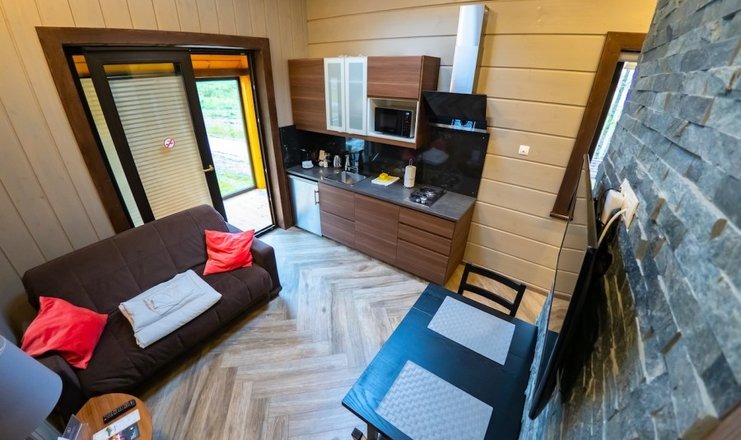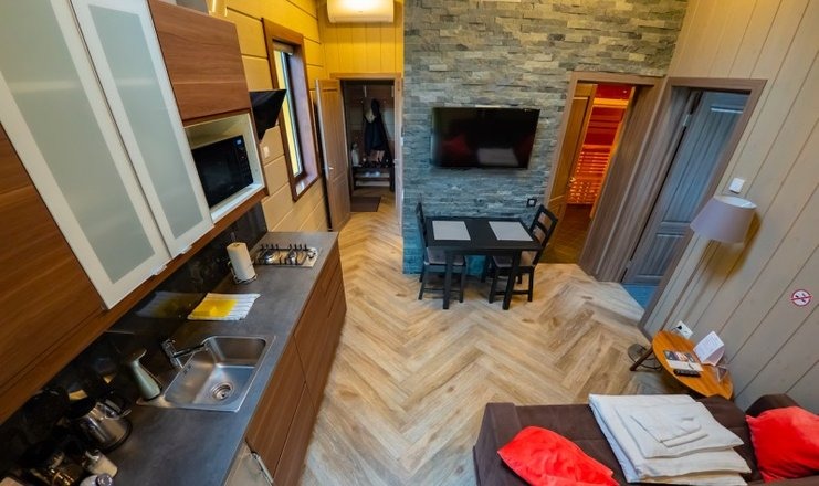 Оборудование: Телевизор, холодильник, электрочайник, варочная панель, микроволновая печь