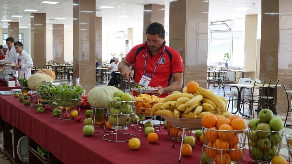 В санатории «Каспий» (Дагестан) организовано трёхразовое питание по системе «шведский стол». Огромное разнообразие блюд не оставит равнодушным даже самого искушенного гурмана. В меню обязательно включены овощи и фрукты. У нас вы научитесь питаться сбалансированно и правильно, насыщая свой организм необходимыми витаминами и минералами